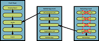 The following image shows the boundaries of a large, multi-versioned application. The sub-applications are loaded into separate, sibling application domains. This means that each application contains its own class definitions so they can be compiled with different versions of the framework (as long as the sub-applications are compiled with the same or older versions of the compiler that the main application was compiled with). All the applications are loaded into the same security domain and therefore trust each other.